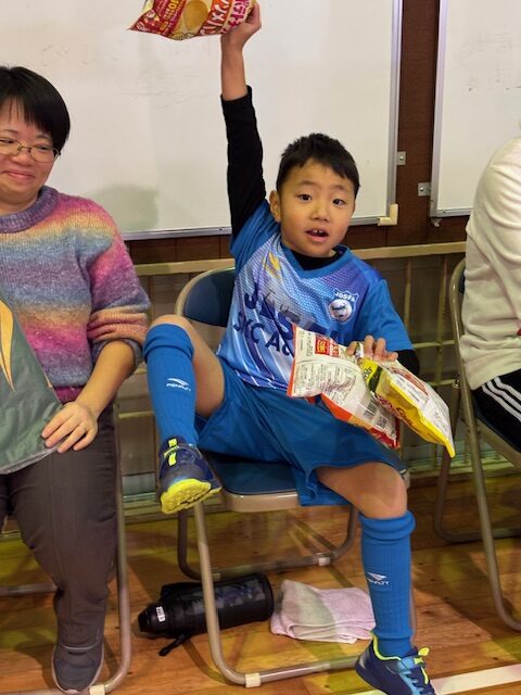 2025年も終わりが近づく中、SKC(スペシャルキッズコーチング)アカデミーのトレーニングも残すところあと1回となりました。現在、SKCアカデミーは広島市で4カテゴリー、東広島市と呉市でそれぞれ1カテゴリーを展開し、地域の子どもたちに「その子らしくスポーツに関われる場」を提供しています。今回の年内最終トレーニングでは、カルビー株式会社様より、かっぱえびせん・ポテトチップス・じゃがりこをご協賛いただき、子どもたちへのクリスマスプレゼントとして配布しました。